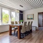 Die Fantastic 170M2 Villa With A Big Garden besteht aus einer Sitzecke und einer Essecke und bietet Gästen einen Personalcomputer und einen Flachbildfernseher mit Satellitenkanälen für einen komfortablen Aufenthalt. Zur Innenausstattung gehören ein Sofa und ein Schreibtisch sowie ein Kamin. Die Unterkunft in Pärnu verfügt über ein Badezimmer mit einer begehbaren Dusche und einer getrennten Toilette. Ein Haartrockner, Toilettenartikel und Handtücher sorgen ebenfalls für Ihren Komfort.